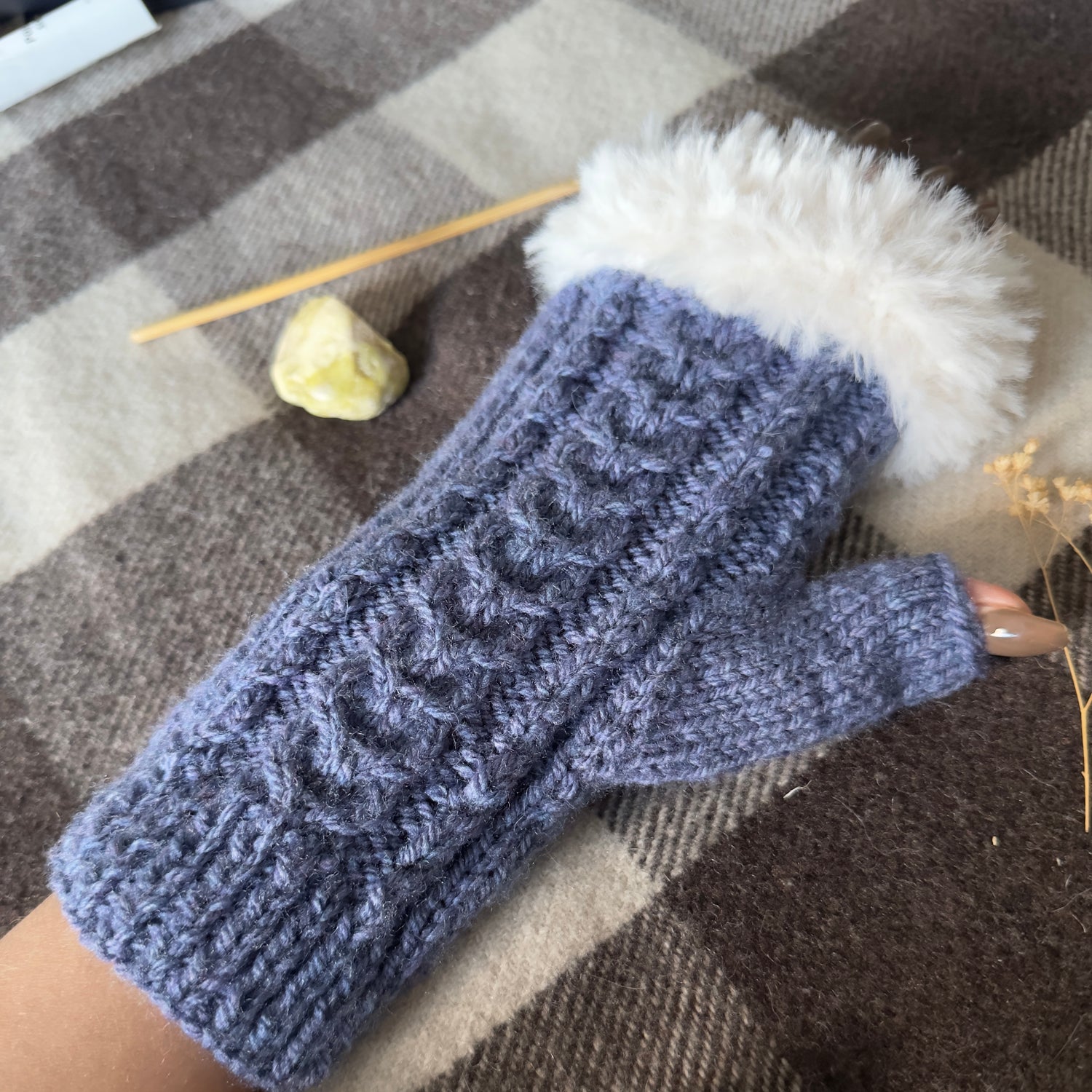 Chaque paire de mitaines est façonnée avec soin, héritière d’un savoir-faire inspiré des traditions celtiques. Les entrelacs, symboles de protection, se mêlent à la douceur d’une fausse fourrure végane, une matière choisie pour réchauffer sans jamais prendre au vivant ce qu’il n’a pas à offrir. Évoquant la chaleur des hivers d’autrefois, cette fourrure d’inspiration ancienne devient aujourd’hui un geste éthique.